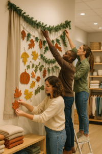 Saisonale Wanddekoration schafft eine ansprechende Einkaufsatmosphäre, die Kunden emotional anspricht und zum Kauf motiviert. Sie kann die Markenidentität stärken und hilft, saisonale Produkte gezielt in Szene zu setzen.