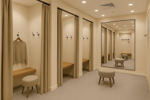 Klar ist: Der stationäre Handel muss den Fokus stärker auf die Kundenerfahrung legen. Eine modern gestaltete, funktional durchdachte Umkleidekabine wird immer mehr zum Differenzierungsmerkmal gegenüber Online-Shops. Wer hier investiert, profitiert mehrfach – durch höhere Konversionsraten, längere Verweildauer und positivere Bewertungen.
